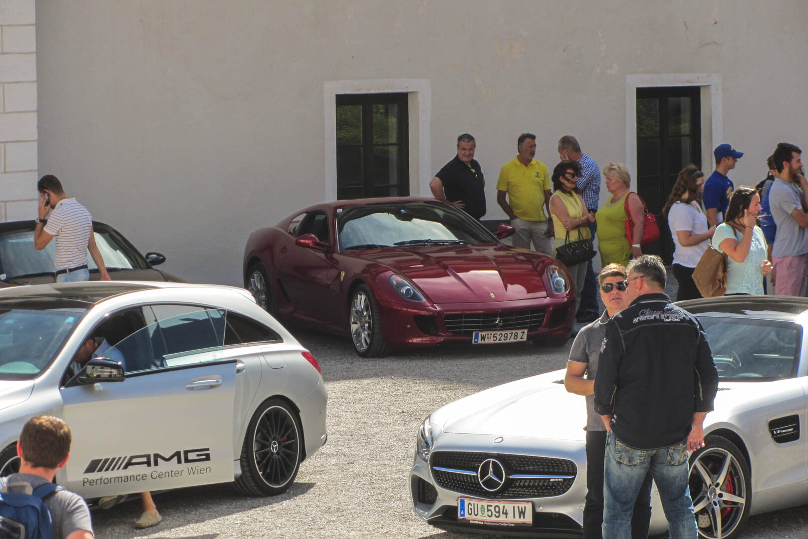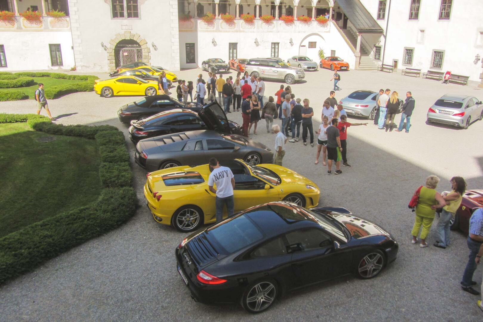 Nach großer Wiedersehensfreude führte uns der Weg die Gutensteiner Alpen entlang Richtung Kirchberg a.d. Pielach zur ersten Mittagsstation. In der Kartause Gaming erwartete uns eine ehemalige Klosteranlage mit wunderschönem Innenhof, wo wir mit unseren Sportwägen erstmalig Aufstellung nahmen.