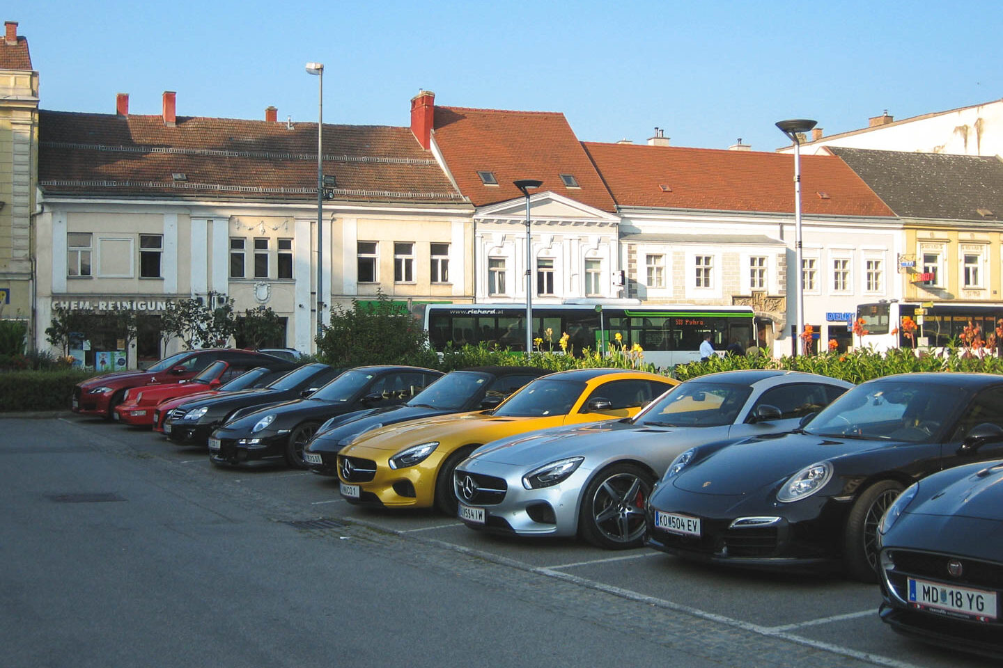 Der große Parkplatz wurde an diesem Wochenende von der Firma Porsche gesperrt, da sie ein neues Modell mit ihren Händlern testete. Das neue Prachtexemplar hautnah und noch vor der offiziellen Präsentation zu sehen, war ein tolles Erlebnis.