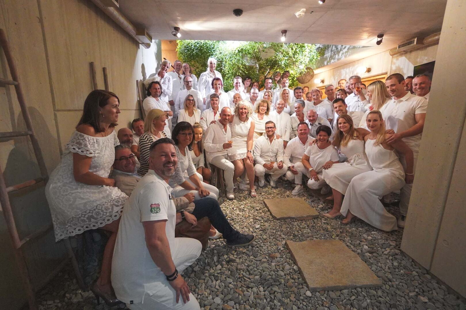 Die Teilnehmenden der Sportwagengenießer:innen-Gruppe hatten das Hotel schon etwas früher erreicht und konnten entspannt die Annehmlichkeiten nutzen. Der Abend stand unter dem Motto „GANZ IN WEISS“. Nach einem ortstypischen Abendmenü sorgte das Quartett „Schräg o’ghaucht“ für gute Partystimmung.
